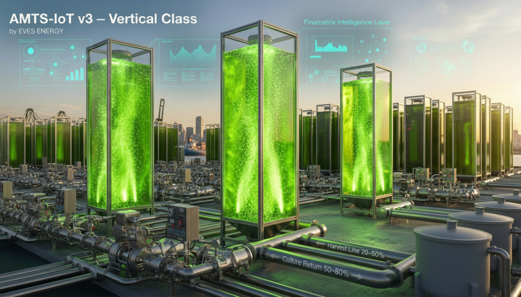 8 Feb 2026: Singapore’s Green Towers of Power Just Leveled Up! Say hello to the AMTS‑IoT Vertical Class – EVES ENERGY’s glowing algae skyscrapers built to guard Singapore’s food and energy future. These stainless‑steel bioreactor towers stack ultra‑dense AMTS‑IoT photobioreactors straight into the sky, squeezing maximum biomass out of every precious square metre of our island.