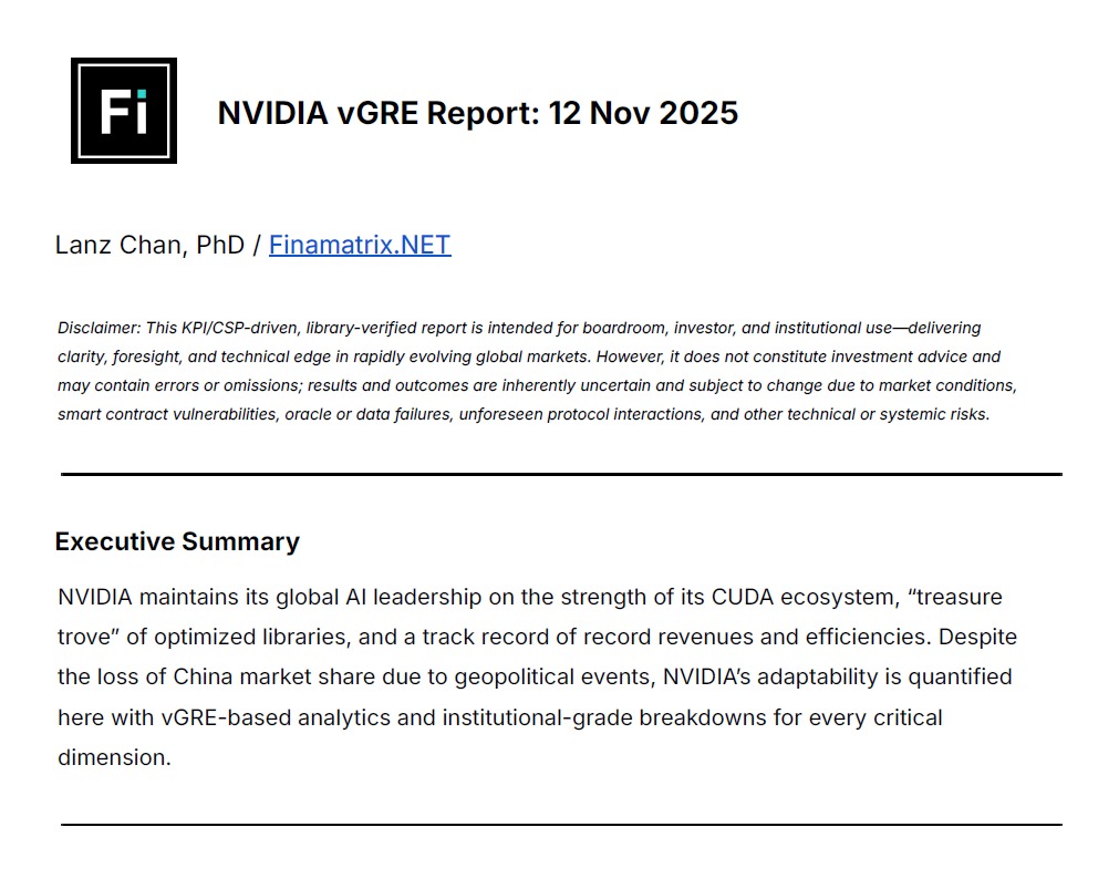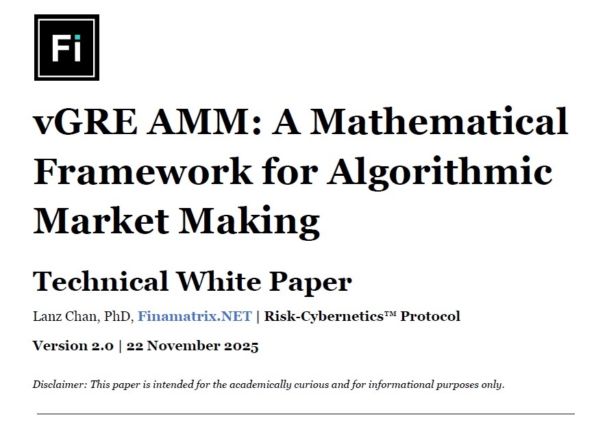 22 Nov 2025: Unlocking Extreme Math for Simple Liquidity – Finamatrix introduces the vGRE Algo Market Maker: a breakthrough in price discovery, liquidity, and risk management for global equities. vGRE delivers superior spreads, speed, uptime, and regulatory compliance with world-class security (PDF / Related Papers: Dynamic Liquidity-79 pages / Perpetual Machine: $FIX-28 pages / $FIX-vGRE Open-Source Value-16 pages / $FIX Problem-Solving Architecture-16 pages)